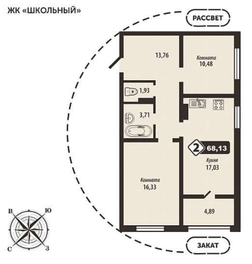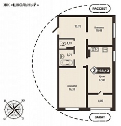 2-комнатная квартира, 68.13 м2