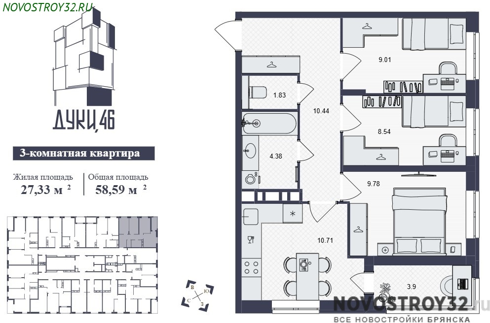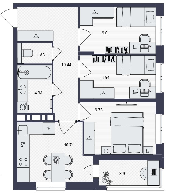 | 3-комнатная | 73.37 | 3-13 | 133000133 000 | 95630459 563 045 |