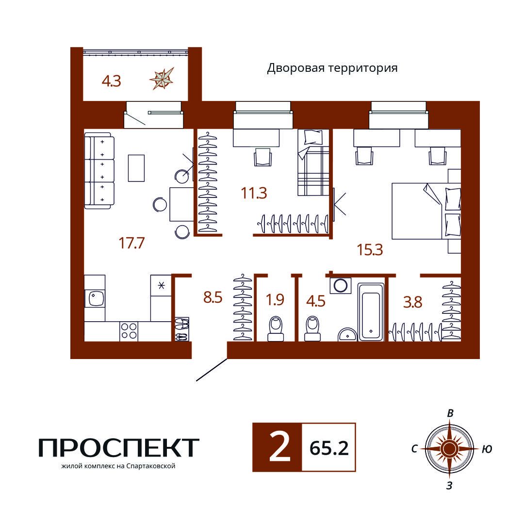 | 2-комнатная | 61.2 | 2-8 | 107500107 500 | 65790006 579 000 |