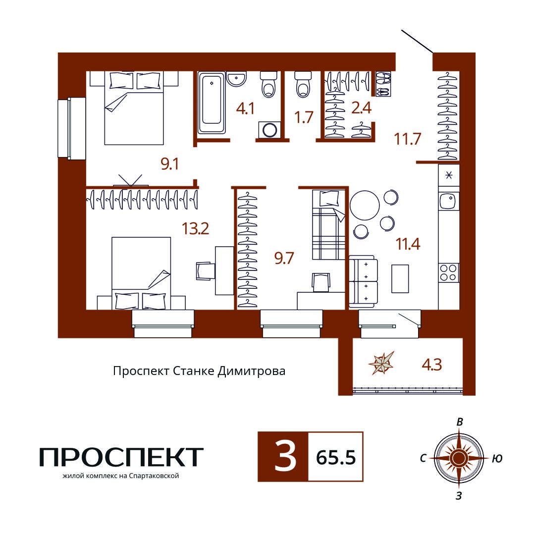 Площадь .......................... 65.6 м2