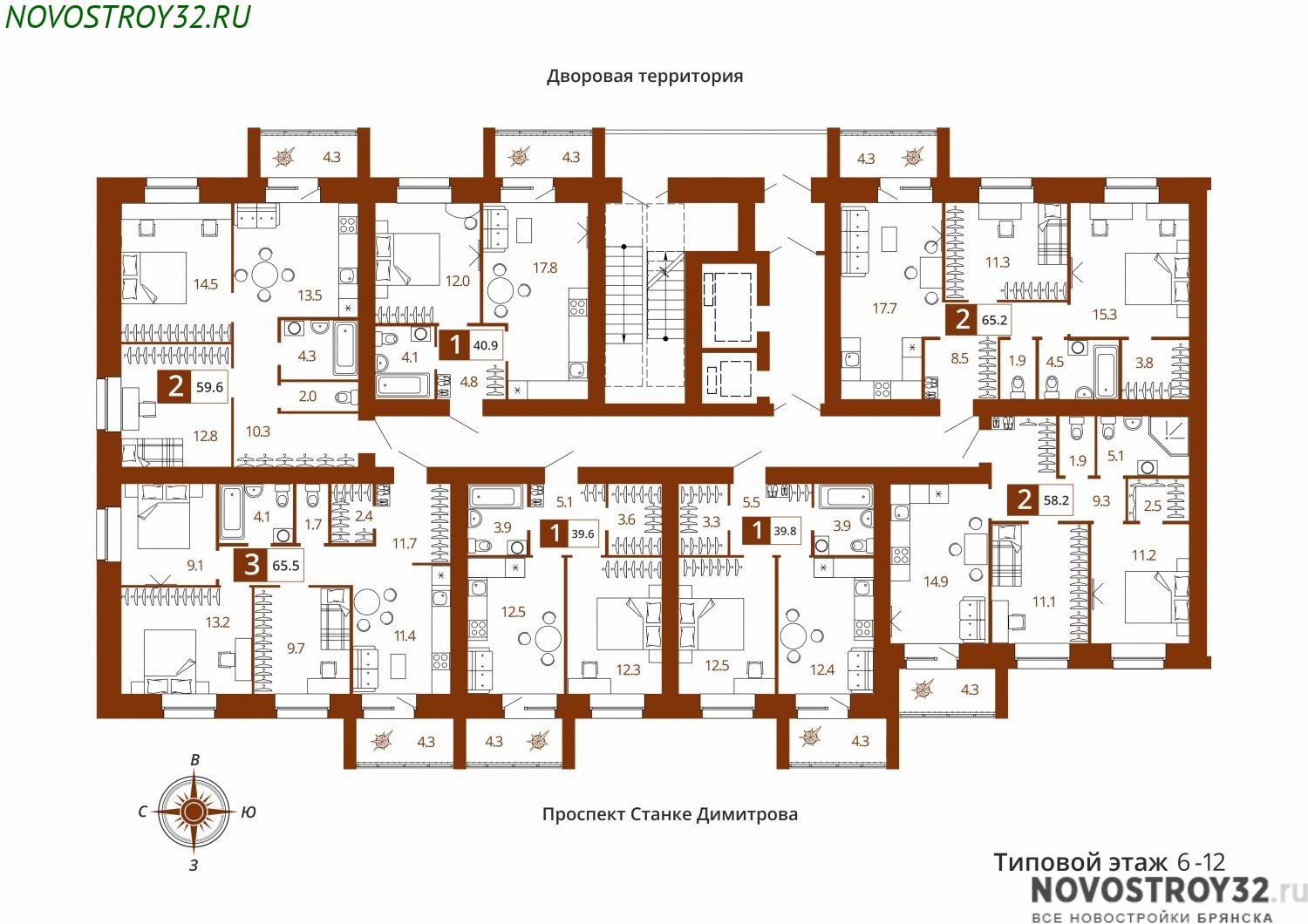 | 3-комнатная | 67.2 | 2-6 | 106500106 500 | 71568007 156 800 |