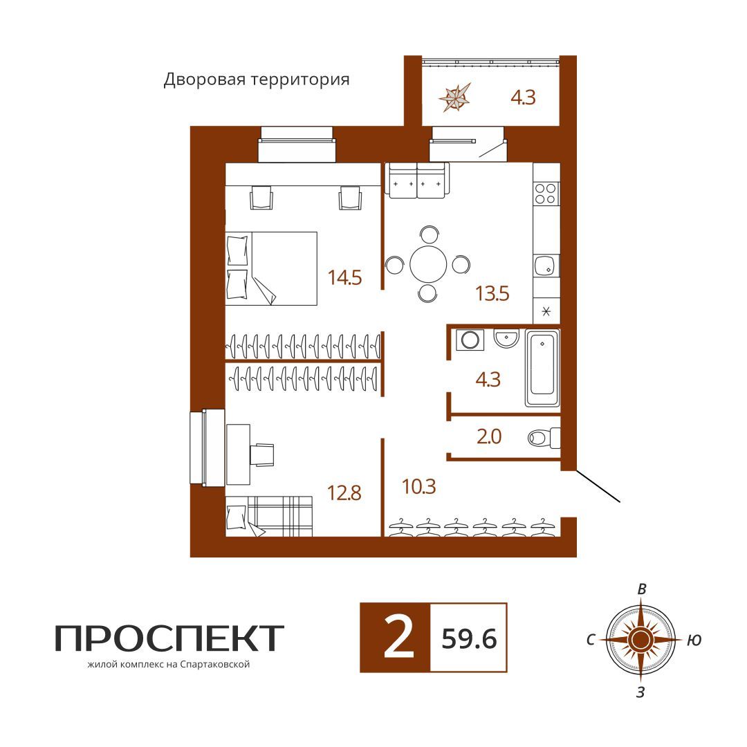 | 2-комнатная | 58.9 | 2-9 | 106500106 500 | 62728506 272 850 |