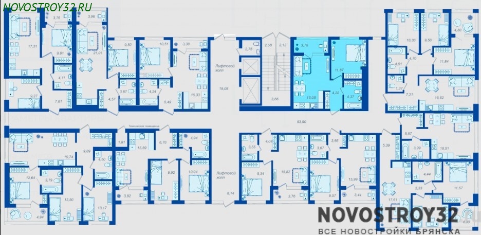 | 2-комнатная | 53.18 | 1-17 | 119500119 500 | 64074356 407 435 |