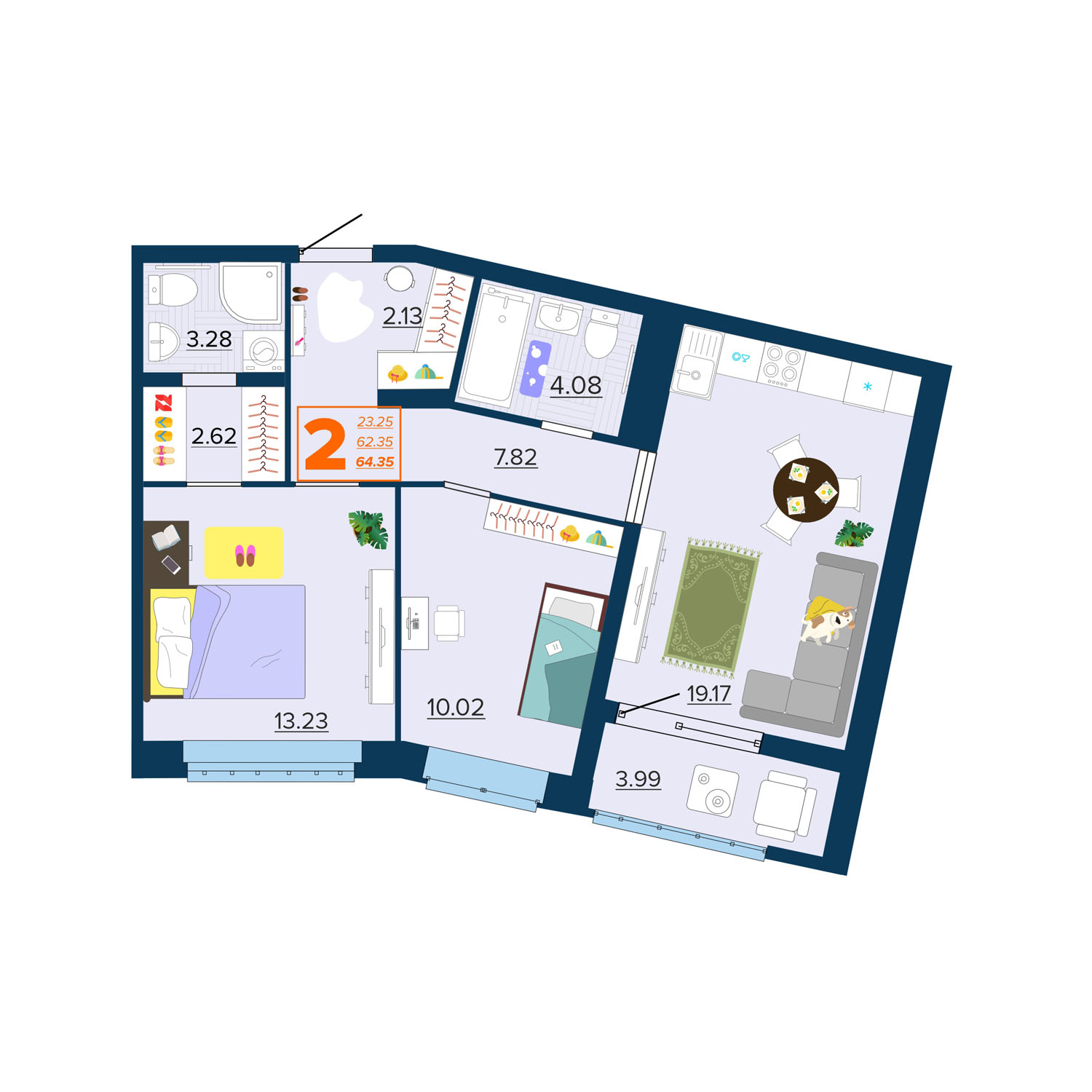 2-комнатная квартира, 64.35 м2