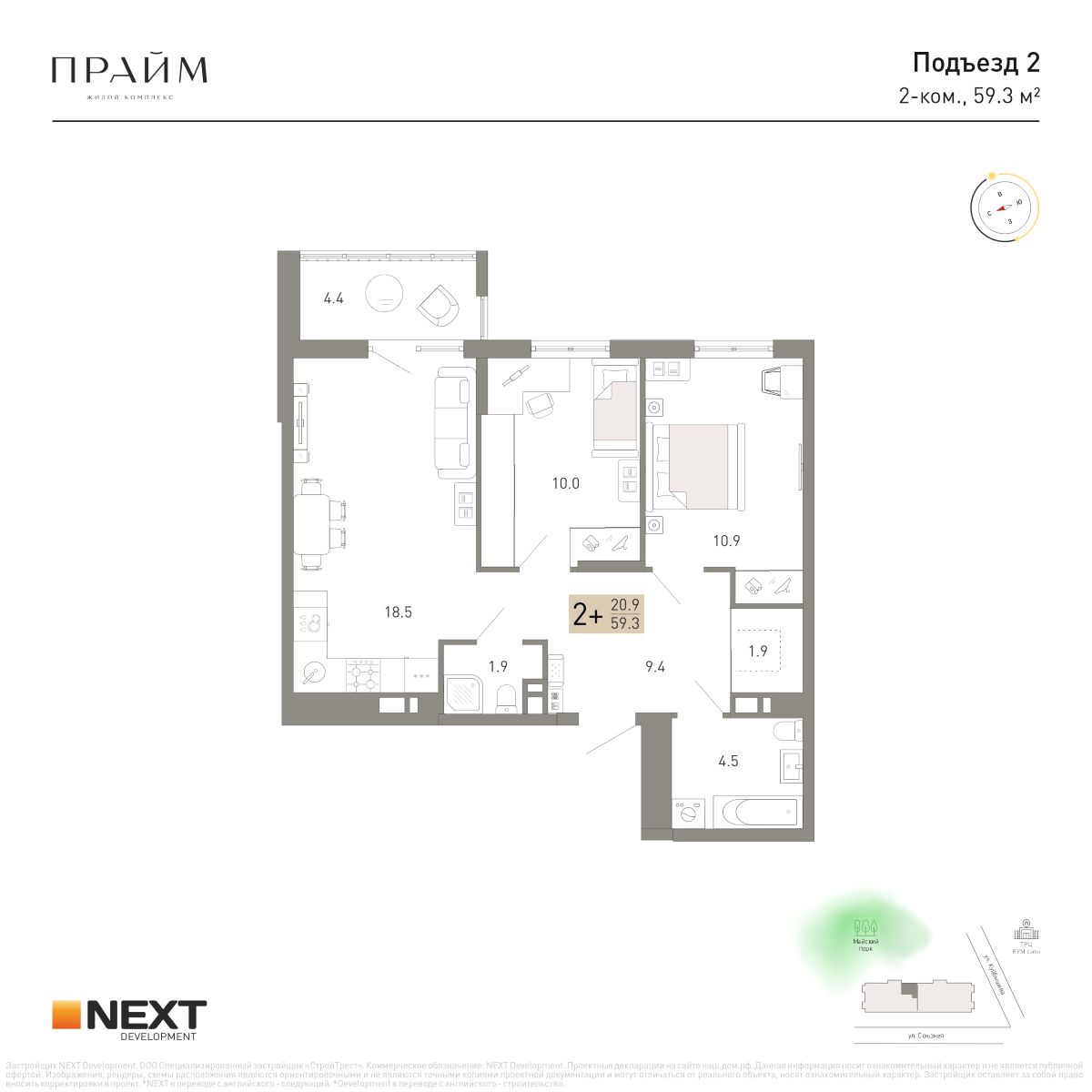 | 2-комнатная | 56.9 | 4-11 | 132950132 950 | 75637177 563 717 |