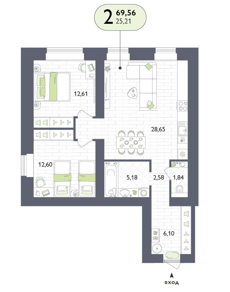 2-комнатная 69.61 1-15 110700110 700 77058277 705 827