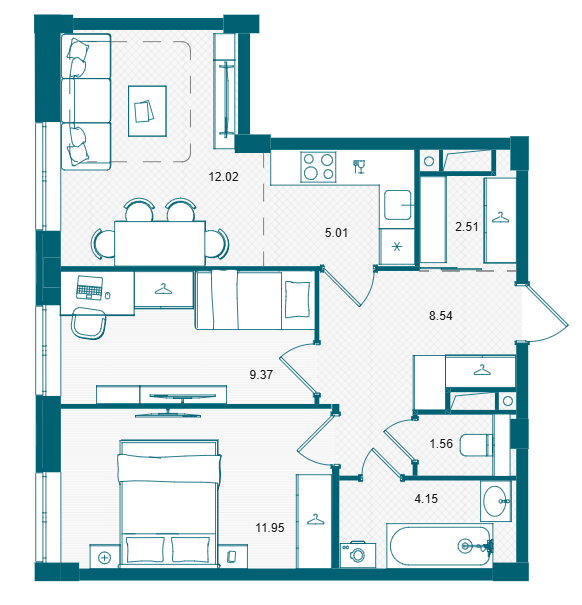| 2-комнатная | 34.18 | 10-12 | 112500112 500 | 38452503 845 250 |