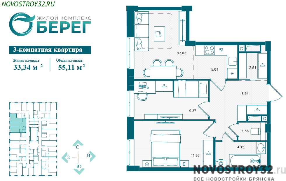 | 1-комнатная | 32.7 | 3-16 | 109000109 000 | 35643003 564 300 |