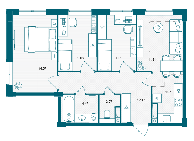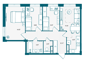 | 3-комнатная | 57.22 | 2-15 | 104000104 000 | 59508805 950 880 |