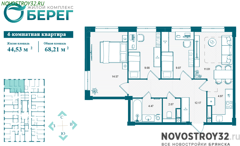 | 4-комнатная | 73.56 | 1-16 | 102000102 000 | 75031207 503 120 |