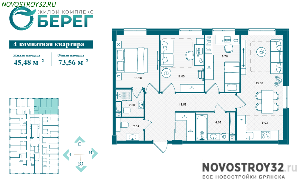 | 1-комнатная | 27.32 | 5-13 | 110000110 000 | 30052003 005 200 |