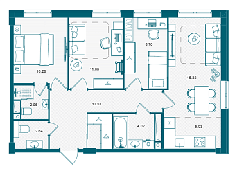 | 3-комнатная | 50.1 | 2-13 | 105000105 000 | 52605005 260 500 |