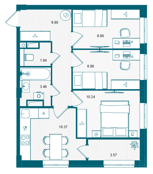 | 4-комнатная | 73.56 | 1-16 | 102000102 000 | 75031207 503 120 |