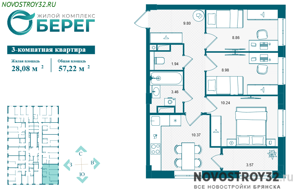 | 3-комнатная | 55.11 | 1-16 | 102000102 000 | 56212205 621 220 |