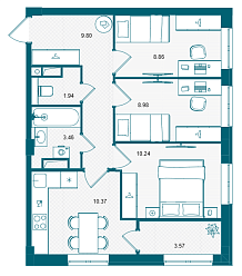 | 2-комнатная | 34.18 | 10-12 | 112500112 500 | 38452503 845 250 |