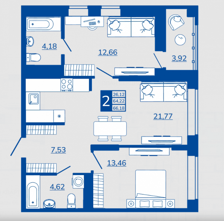 | 2-комнатная | 66.45 | 3-17 | 128000128 000 | 84826008 482 600 |