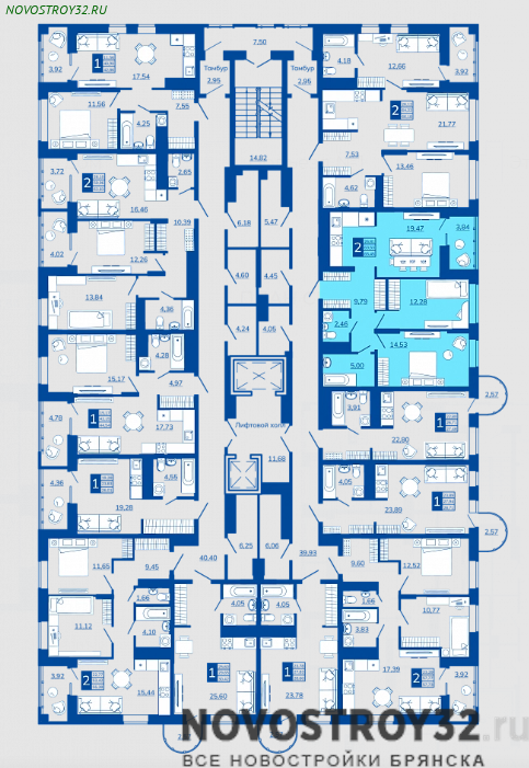 | 2-комнатная | 55.38 | 4-13 | 129000129 000 | 72769007 276 900 |