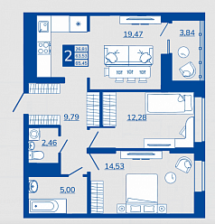 | 2-комнатная | 57.73 | 5-13 | 130000130 000 | 75946007 594 600 |