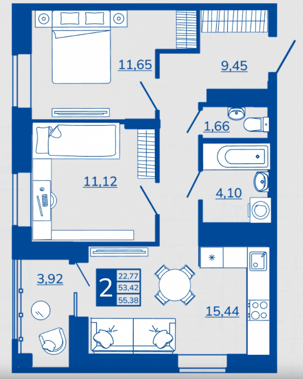 Площадь .......................... 55.38 м2