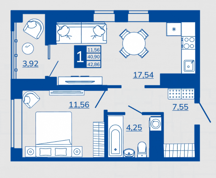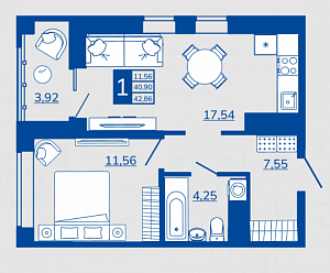 | 1-комнатная | 44.54 | 4-13 | 129000129 000 | 58347005 834 700 |