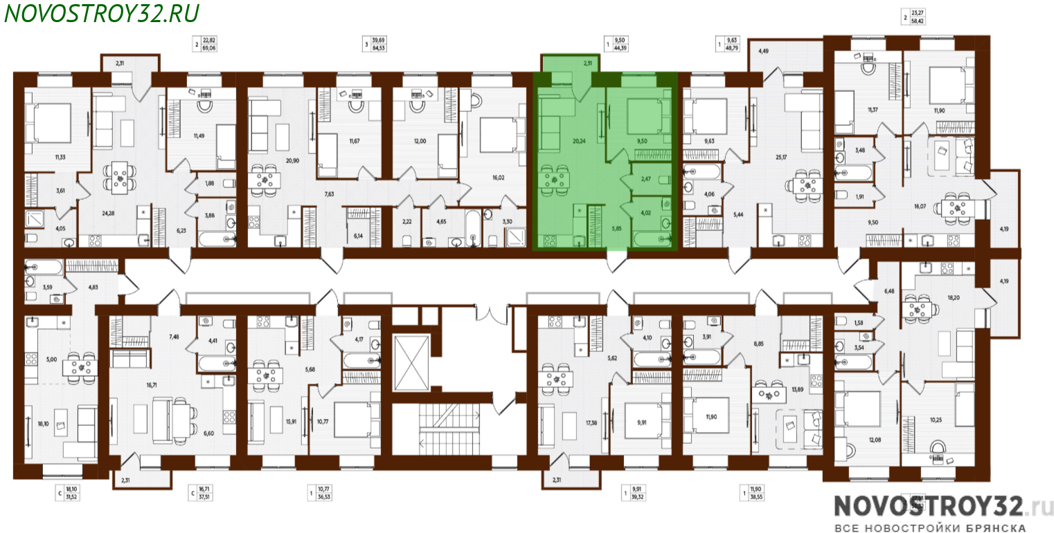 | 2-комнатная | 56.32 | 3-9 | 117100117 100 | 65956356 595 635 |