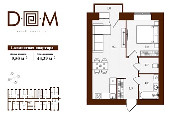 | 1-комнатная | 38.84 | 2-9 | 124500124 500 | 48340264 834 026 |