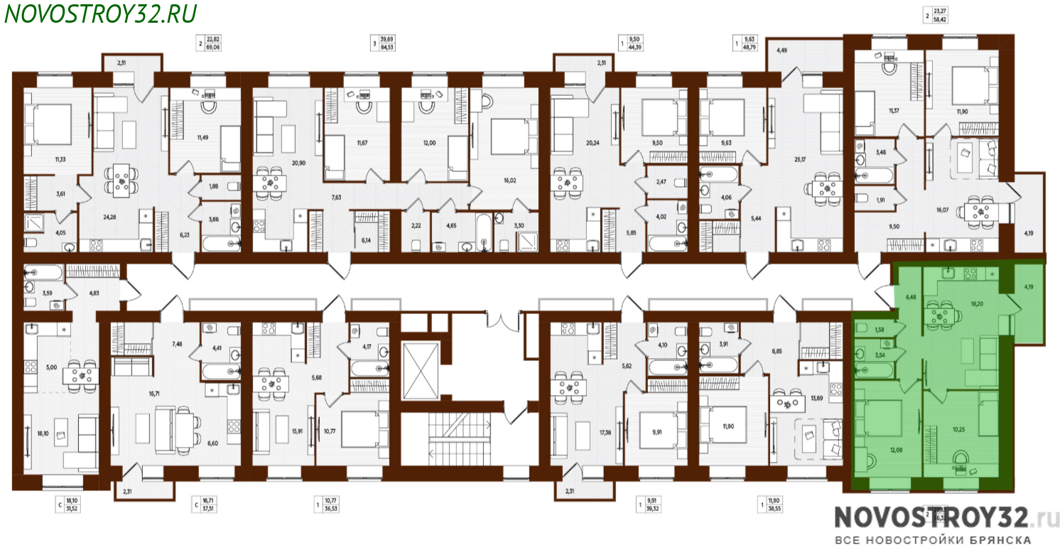 | 2-комнатная | 58.42 | 2-9 | 117100117 100 | 68415666 841 566 |