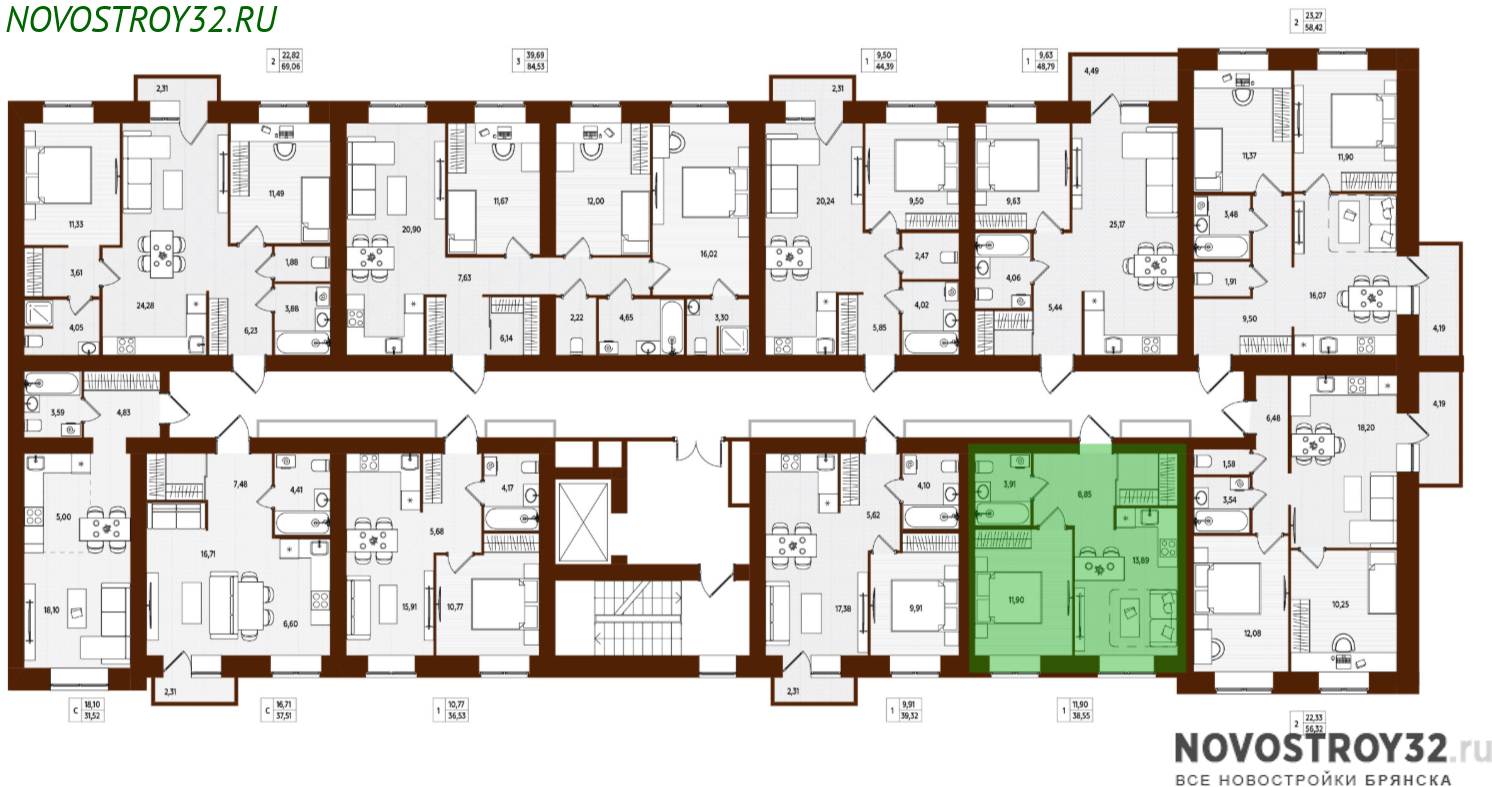 | 2-комнатная | 58.42 | 2-9 | 117100117 100 | 68415666 841 566 |