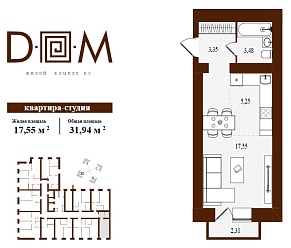 | 1-комнатная | 42.43 | 2-14 | 121550121 550 | 51560935 156 093 |