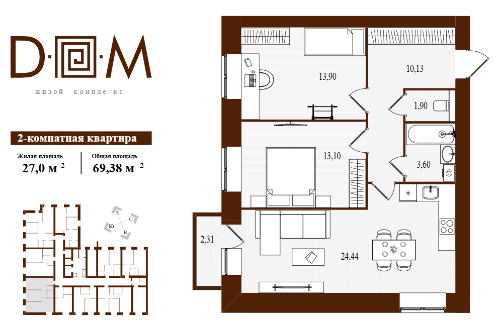 Площадь .......................... 69.38 м2
