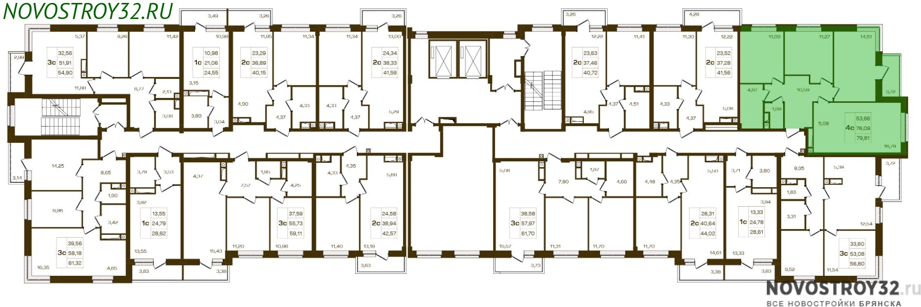 | 3-комнатная | 56.8 | 1-16 | 133300133 300 | 75703047 570 304 |