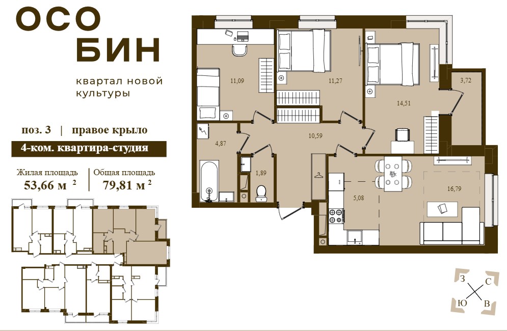 | 3-комнатная | 59.11 | 3-16 | 135300135 300 | 79940367 994 036 |