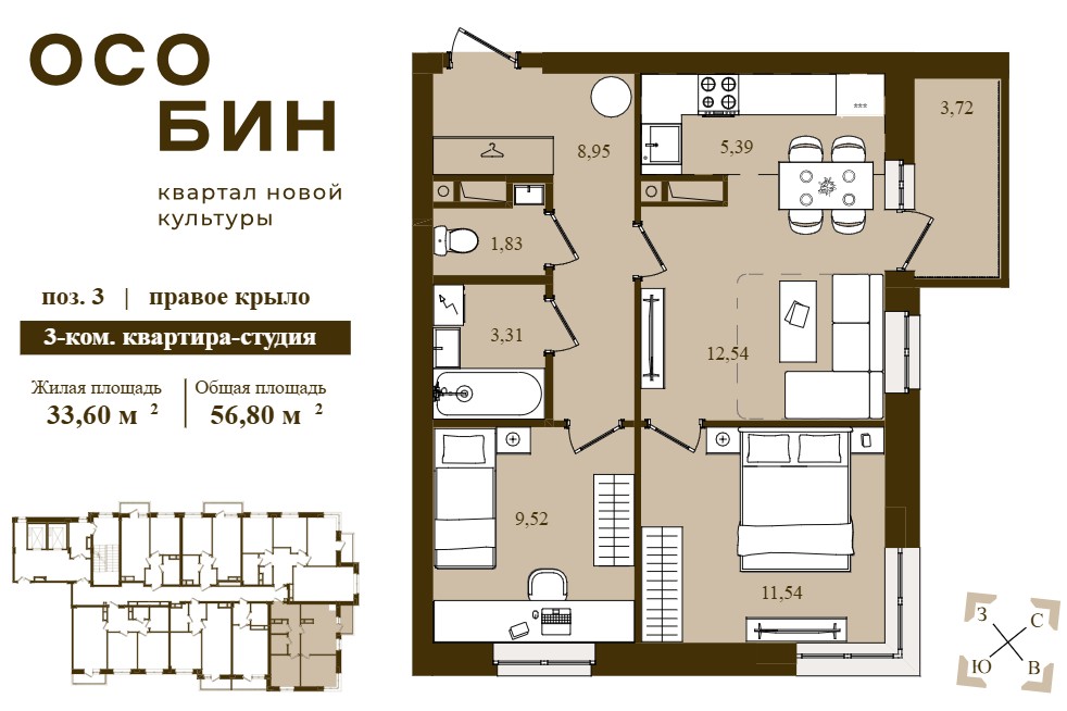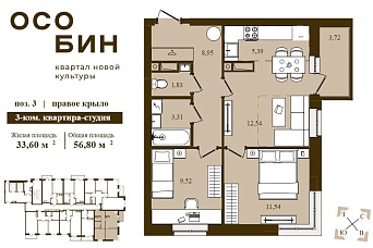 | 2-комнатная | 42.57 | 3-16 | 134300134 300 | 57154485 715 448 |