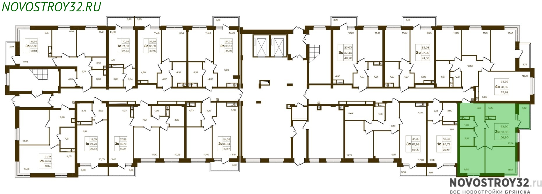 | 3-комнатная | 59.11 | 3-16 | 135300135 300 | 79940367 994 036 |