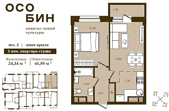 | 1-комнатная | 24.55 | 1-16 | 136700136 700 | 33562303 356 230 |