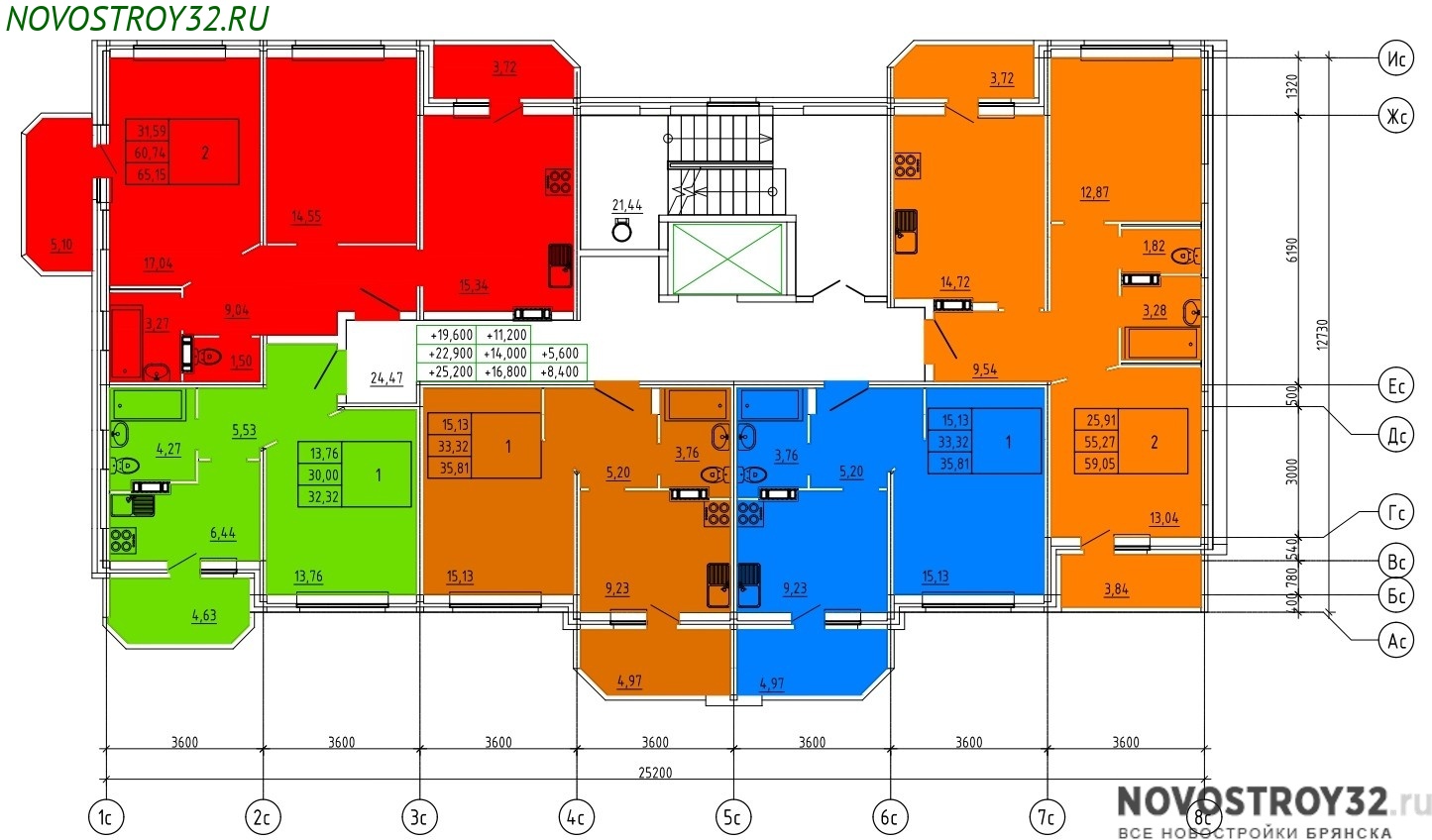 | 2-комнатная | 59.05 | 1-10 | 8000080 000 | 47240004 724 000 |